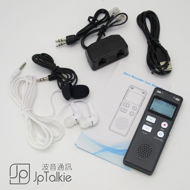 說明書(含保修卡)、microUSB線、耳機、Line-in線、電話連線、電話錄音轉接器。