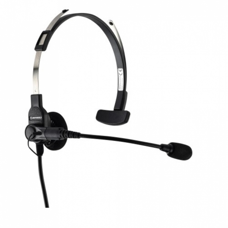 Flexible boom microphone with in-line Push-to-Talk switch. Comfortable and stays outside the ear.